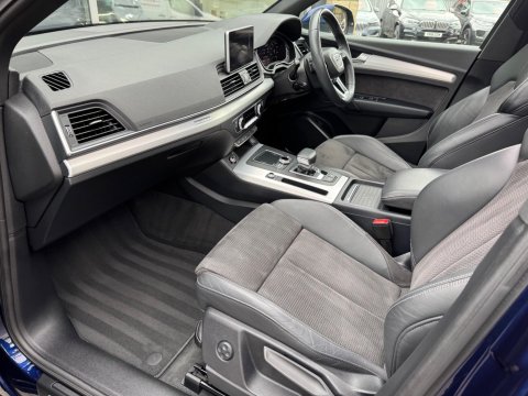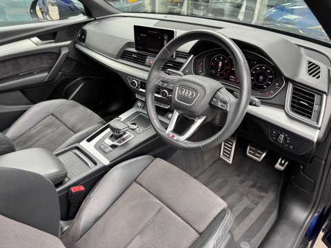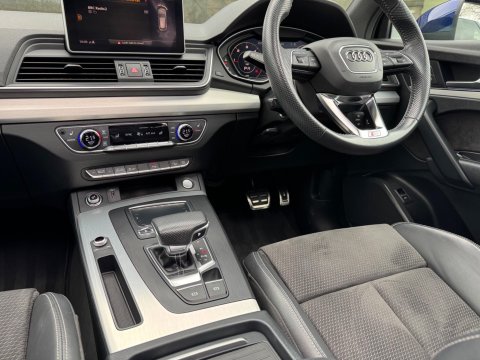 - About this AudiDenton Cars are pleased to offer for sale this high specification Audi Q5 S Line Quattro that's done 47,800 miles from new - It looks stunning in Blue with alcantara heated interior trim. It also benefits from full servicing history where it's had a recent cambelt change. Optional specification includes the following extras - panoramic opening sunroof, 20" alloy wheels and much more. Just arrived and available to view at our Otley Site LS21 1HD - For further details on the full specification or to organise a viewing call us today at Denton Cars.