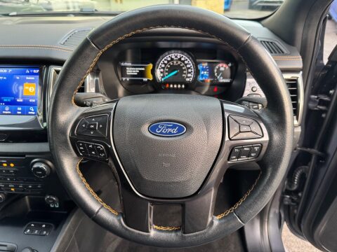- About this FordDenton Cars are pleased to offer for sale this 2021 Ford Ranger Wildtrak Auto that's done just 39,800 miles from new - It looks great in grey with wildtrak interior trim and it benefits from specification which includes heated seats, reversing camera with parking sensors, navigation , multi function steering wheel with cruise control and much more - locally owned it benefits from Ford Servicing History and it's available to view at our Otley Site LS21 1HD. For further details on the full specification or to organise a viewing call us at Denton Cars today.